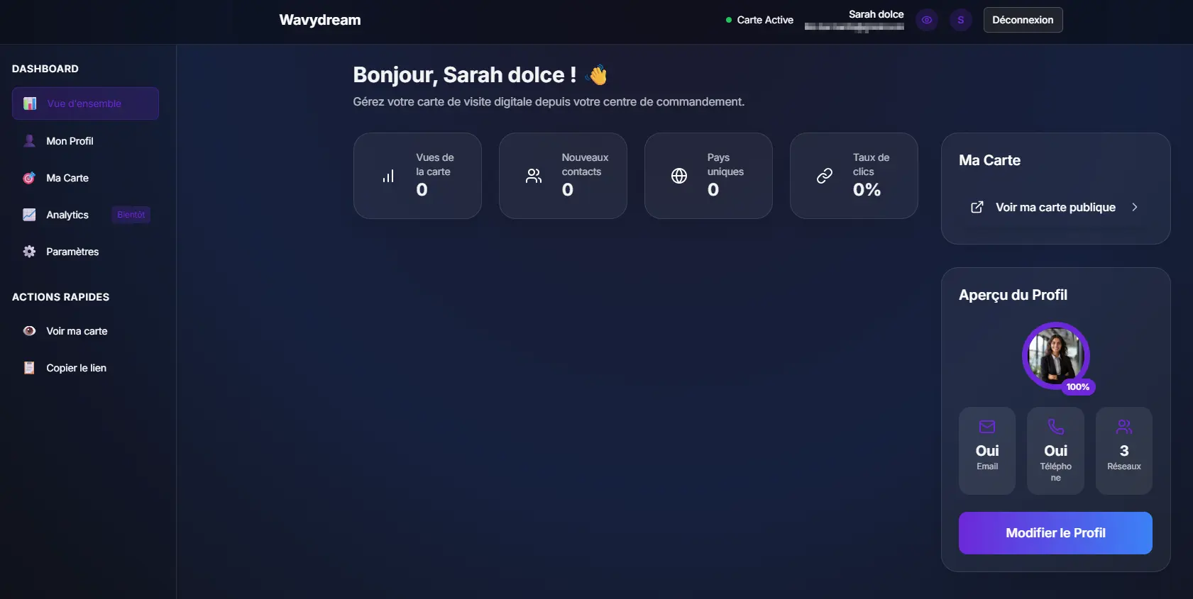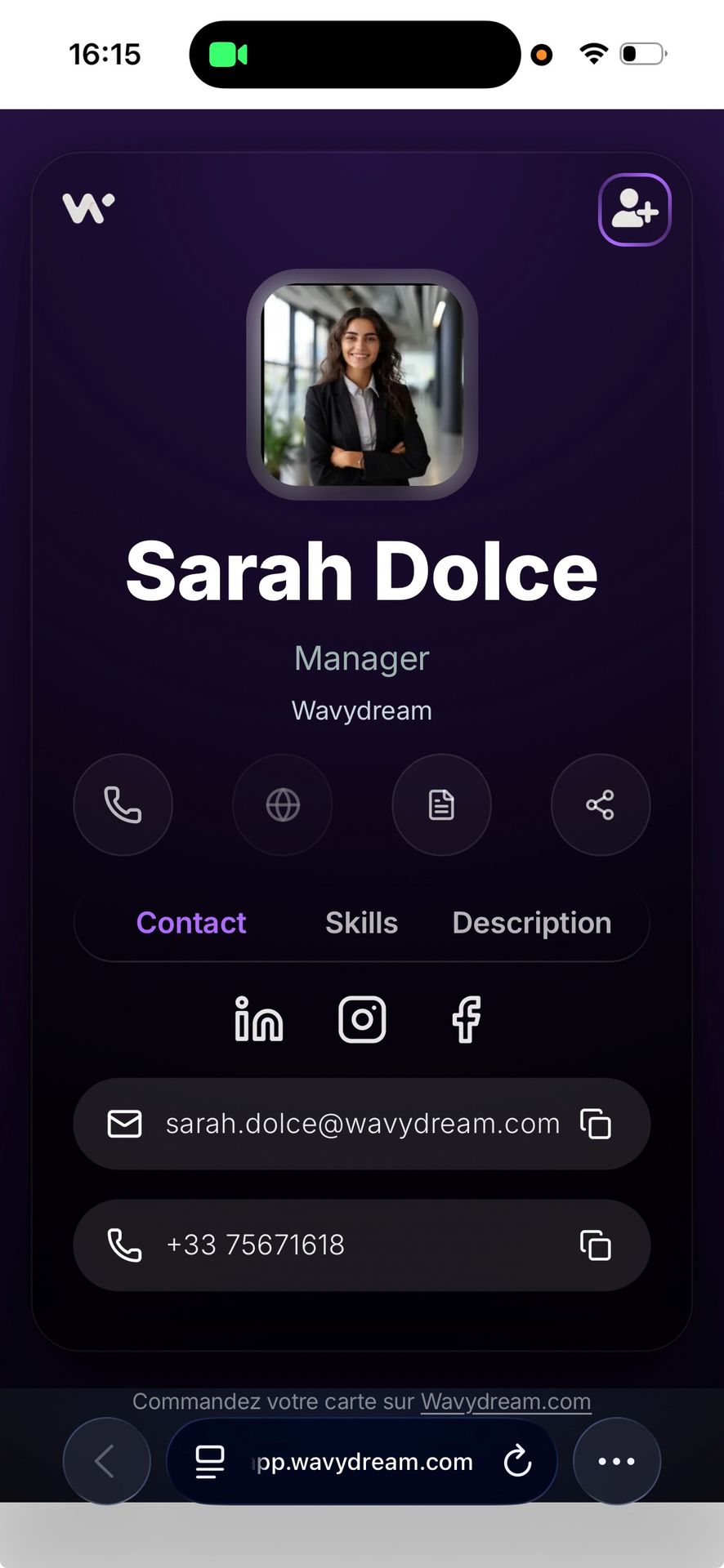 La Carte Pro Wavydream est une carte NFC élégante qui partage instantanément votre identité professionnelle à vos contacts en un simple geste.