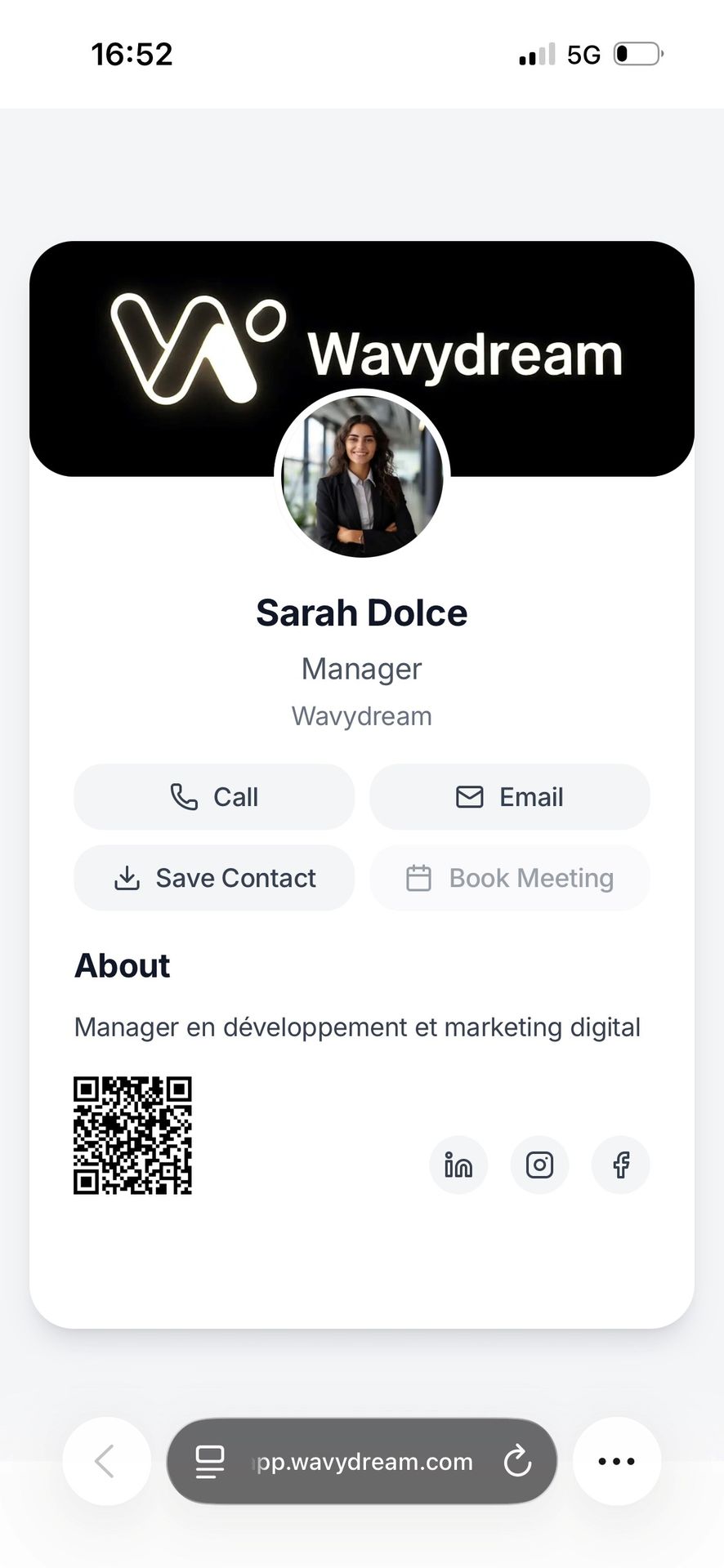 La Carte Pro Wavydream est une carte NFC élégante qui partage instantanément votre identité professionnelle à vos contacts en un simple geste.